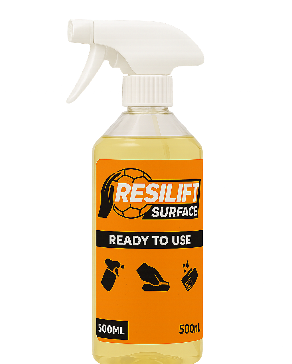 RESILIFT SURFACE est un nettoyant résine handball surface prêt à l’emploi qui élimine la colle et les traces grasses sans dilution ni temps de préparation. Conditionné en pulvérisateur 500 mL, il complète la gamme RESILIFT pour traiter toutes les parties périphériques d’une salle : poteaux de but, tables de marque, bancs, rampes et chariots à ballons.